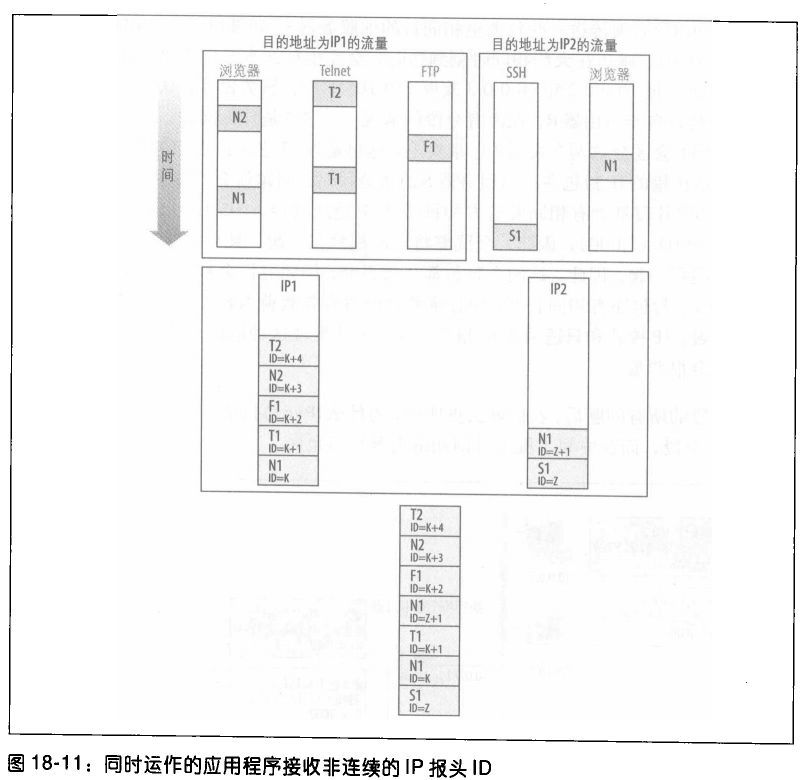 Linux 内核不是使用一个全局 IP ID,而是为每个目的 IP 地址设置不同的计数器。