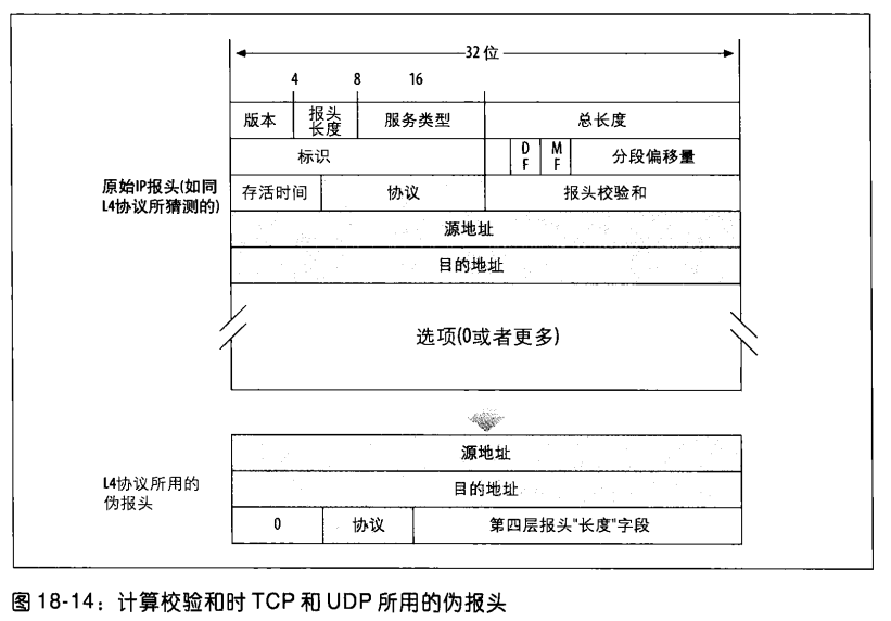 伪报头中的字段是从 IP 报头中取来,IP 报头中出现的一些信息最后会整合至 L4 校验和内。