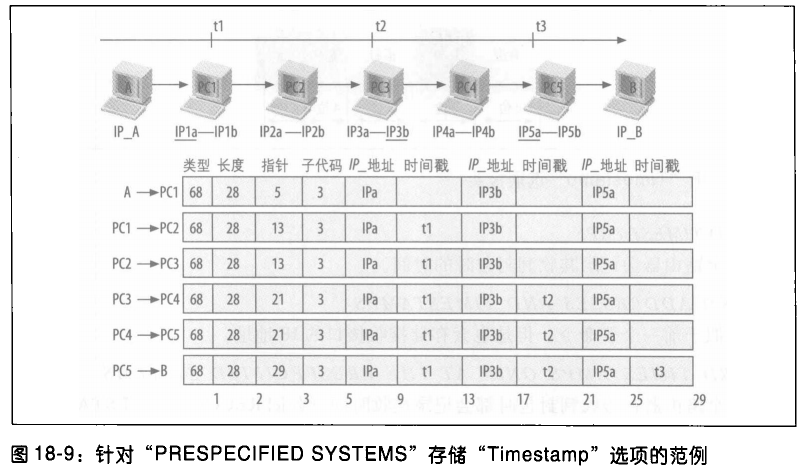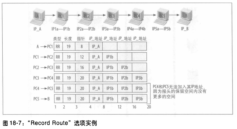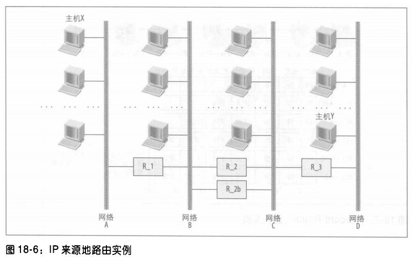 松散 (loose): 一台中间路由器可以使用另一台路由器(不在列表中的)作为通向列表中下一个路由器的路径;传送者所指定的所有路由器还是必须按其指定的次序使用