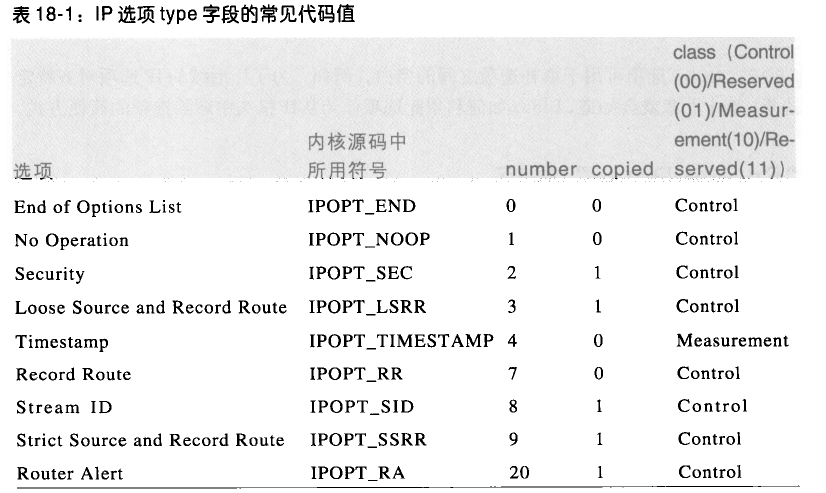 include/linux/ip.h 中可以找到这些选项类型的定义,以及一些存取其子字段的宏: