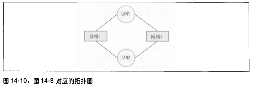 要让图 14-10 的图形无环路,所需要做的就是关闭一个网桥端口,并删除一条连接线路。