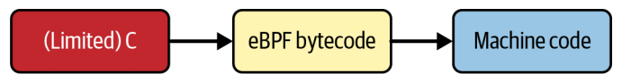 C(或 Rust)源代码会被编译为 eBPF 字节码,而这些 eBPF 字节码又会通过即时编译(JIT) 或解释的方式,转换为原生的机器码指令。